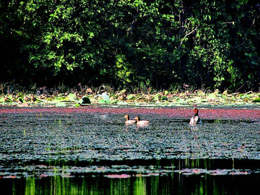 The lake is fed by direct precipitation during the monsoon season and by surface flows from the watershed area, ground water springs and small streams. Water depth varies from 1-4 m. Secchi depth transparency and high phoshor level indicates the lake as hypertrophic, the nitrogen level as eutrophic, and low Chlorophyll “A” level (due to rich growth of macrophytes) as oligo to mesotrophic. Dissolved oxygen is low with a minimum of 3-5 mg/l.